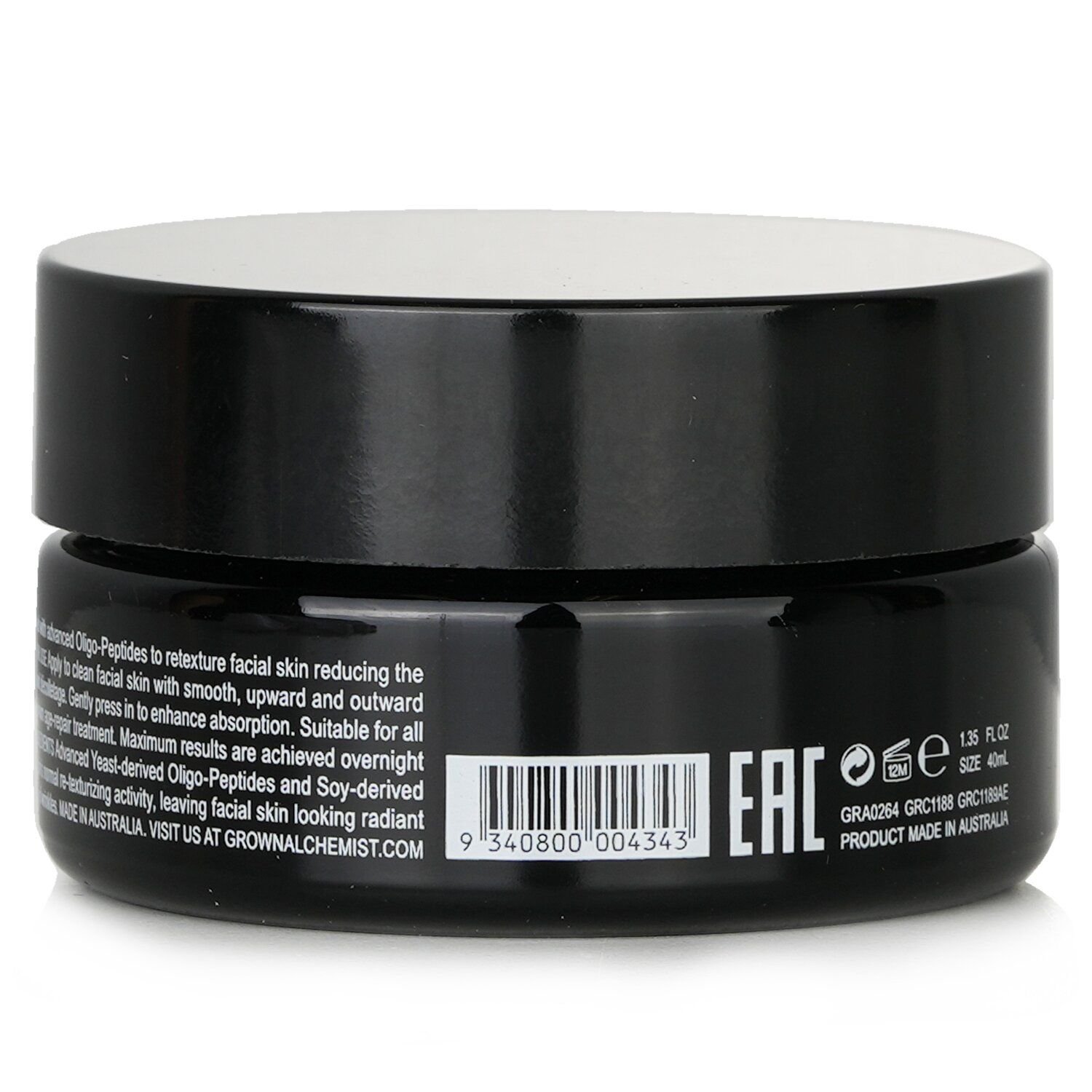 A weightless overnight leave-in facial mask Powered by advanced Yeast-derived Oligo-Peptides & Soy-derived Amino Acids Noticeably restores & enhances skin’s normal re-texturizing activity Significantly reduces the depth & appearance of wrinkles & fine lines Enhanced with Helix-Aspersa, a potent snail extract with Copper Peptides & super nutrients Stimulates collagen synthesis & skin renewal while boosting hydration levels Skin appears smoother, brighter & younger-looking