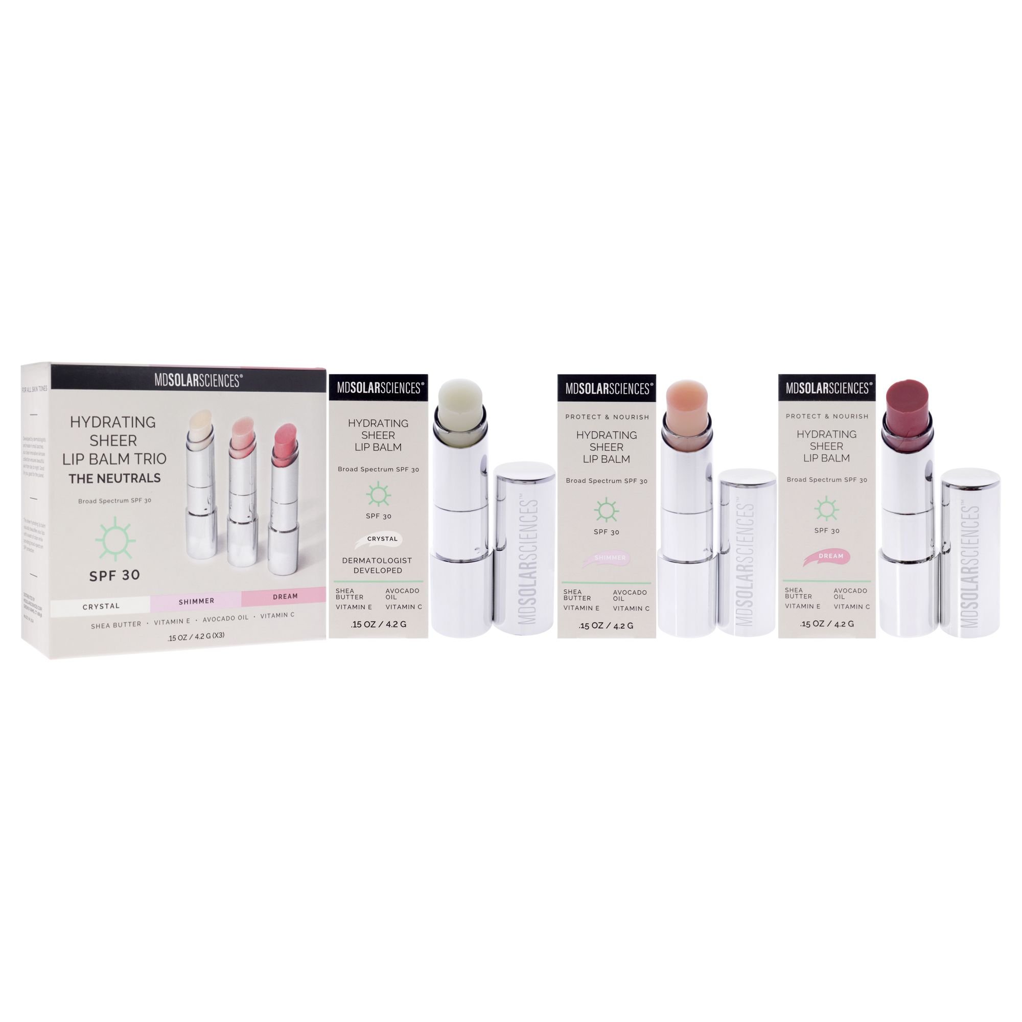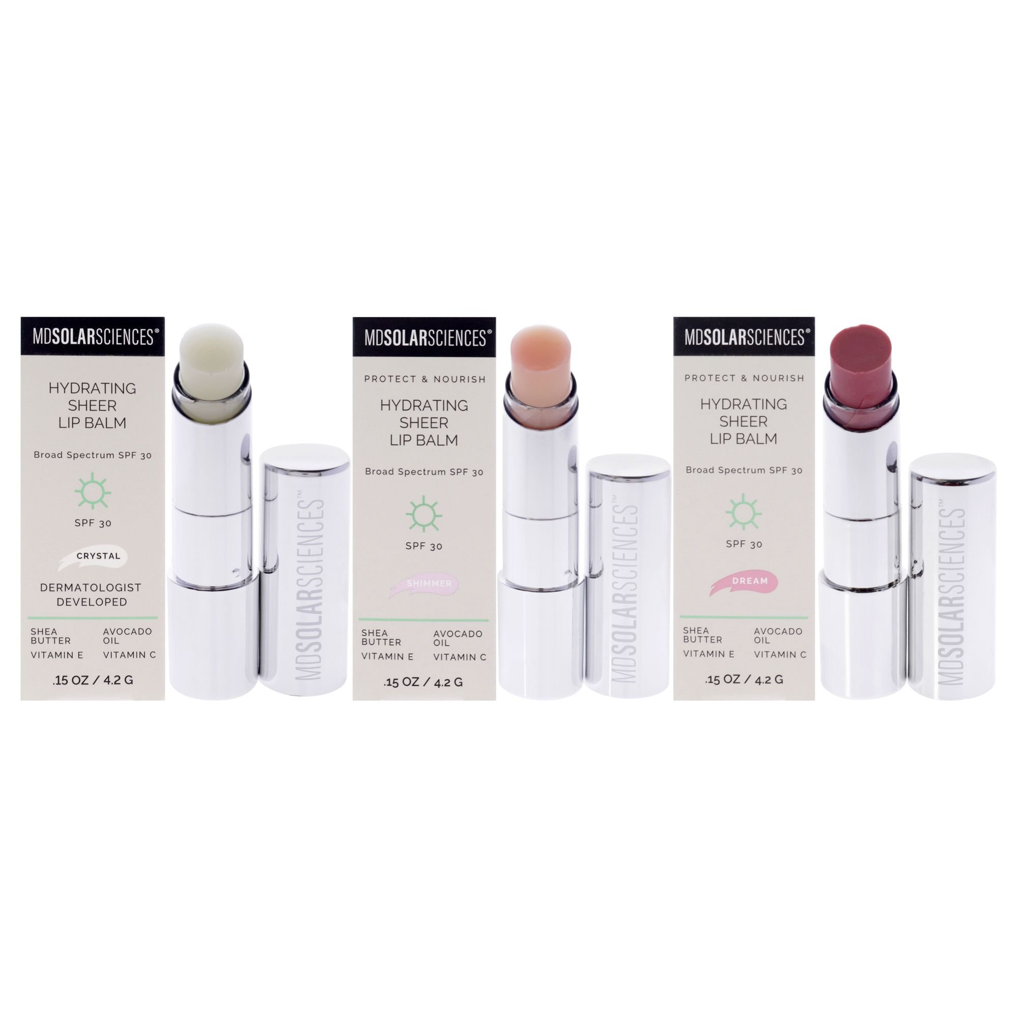 Hydrating Sheer Lip Balm Trio SPF 30 by MDSolarSciences for Women - 3 Pc 0.15oz Lip Balm - Dream, 0.15oz Lip Balm - Crystal, 0.15oz Lip Balm - Shimmer