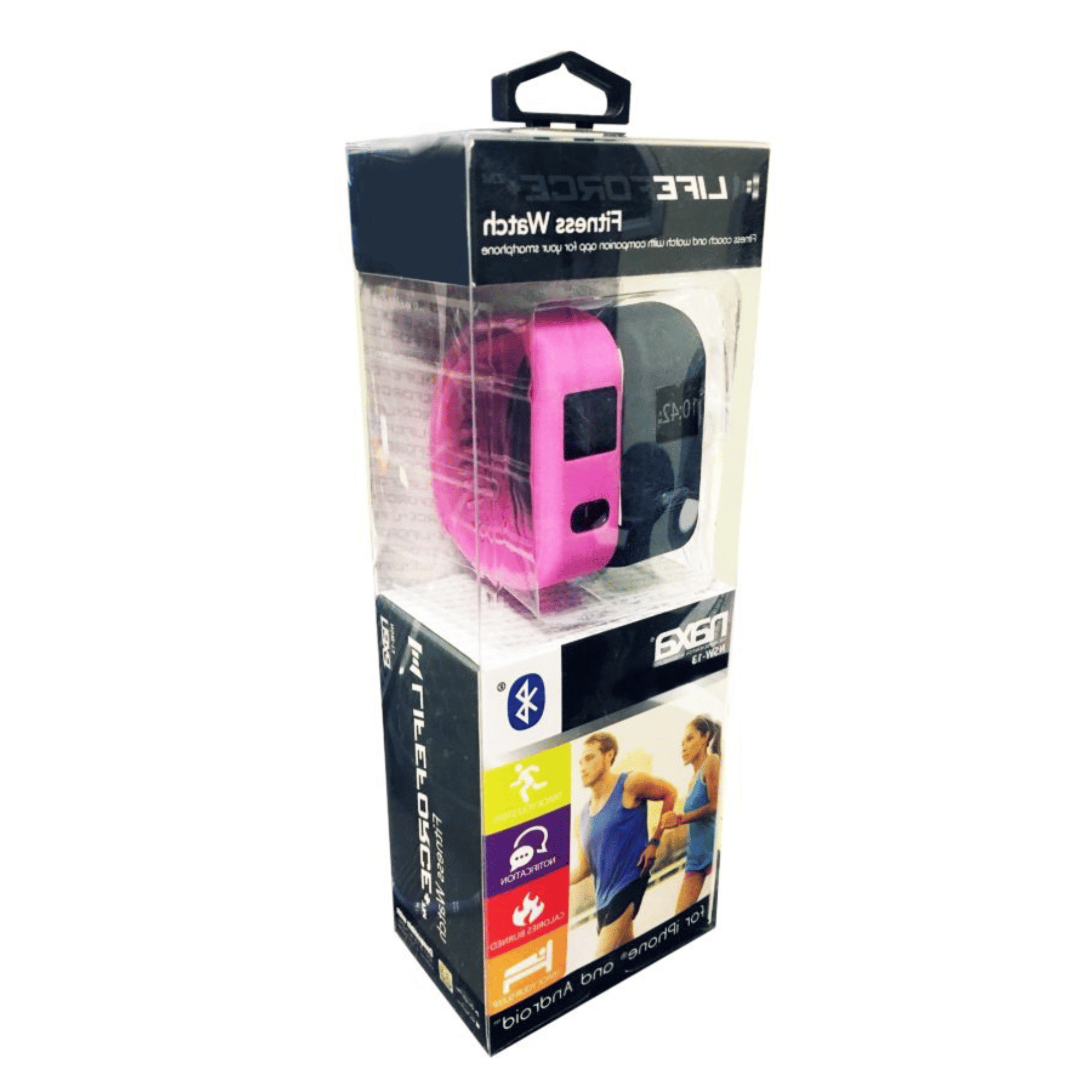 Make fitness fun with Naxa’s LifeForce+ Fitness Watch for iPhone and Android (NSW-13). This fitness watch comes with a step counter and calorie tracker, which helps you improve your health and drives your motivation by monitoring your daily activities and diet regimen. Build a regimen thanks to the fitness coach with companion app, downloadable for your smartphone. The NSW-13 also features sleep monitoring to track your sleeping patterns related to your health and fitness. User-friendly and easily legible, the NSW-13 has an OLED screen with time display and call notifications when paired with your phone. The durable and adjustable fitness band allows for a comfortable fit throughout the day. Powered by a built-in rechargeable battery and USB charge cable included.