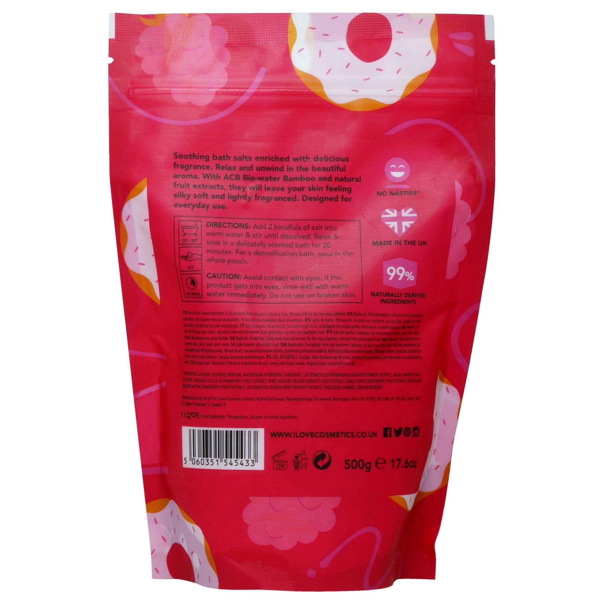 Scented Bath Salts - Glazed Raspberry by I Love Cosmetics for Women - 17.6 oz Bath Salt